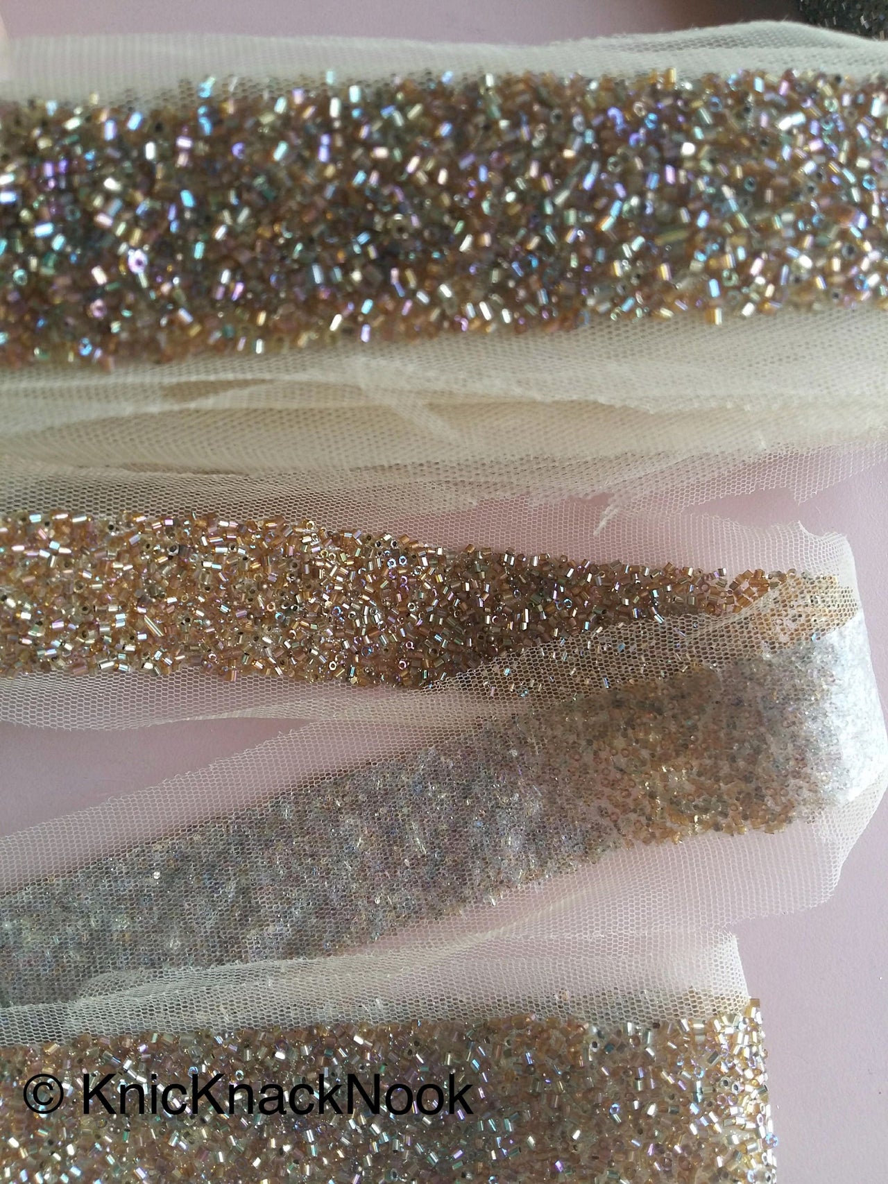 Beige Net Trim With Gold / Copper Beads Embellishments - 200317L199/ 200