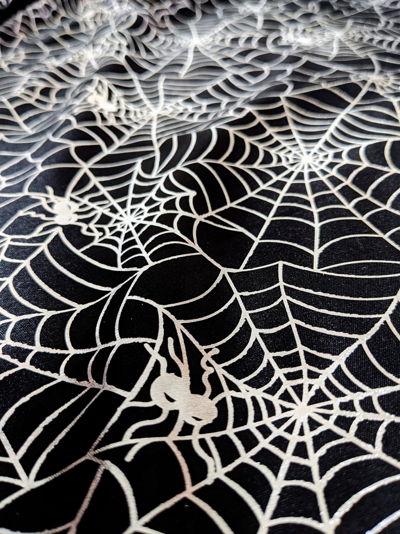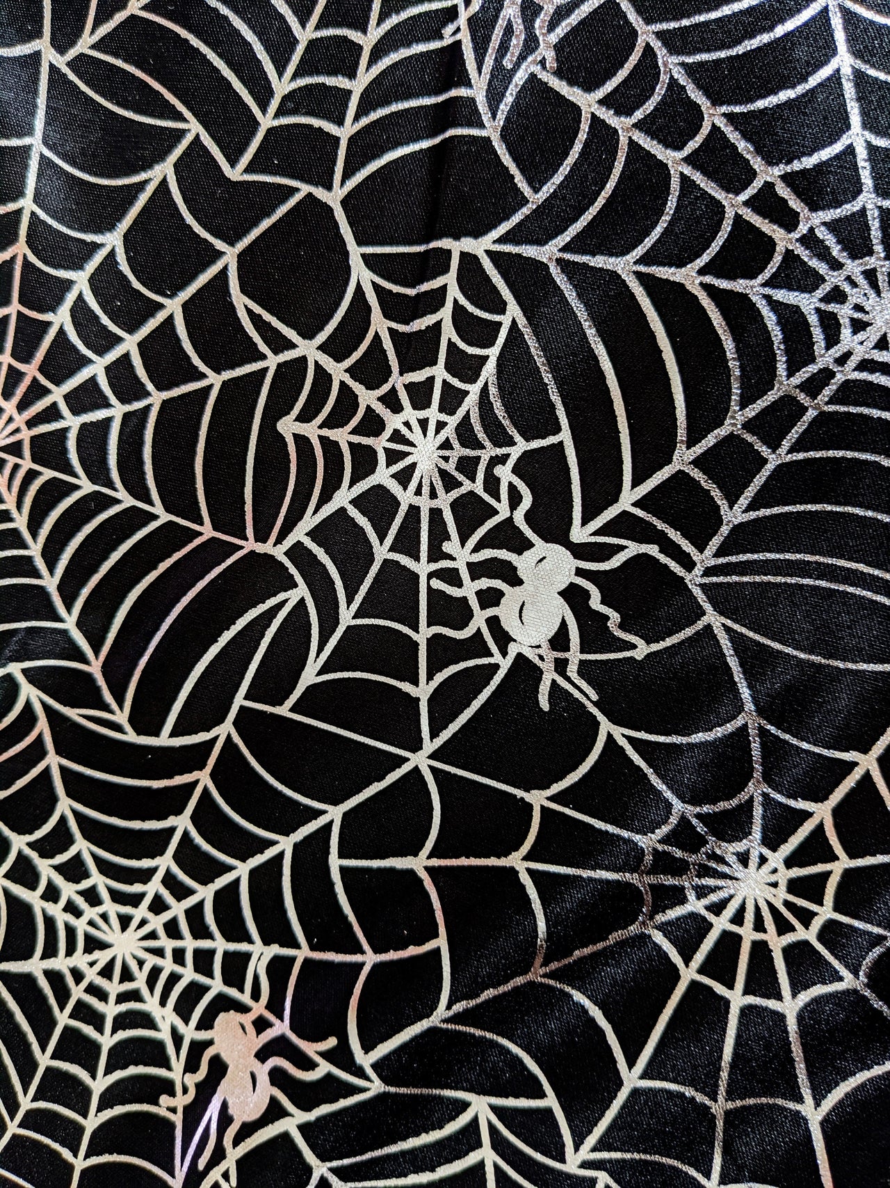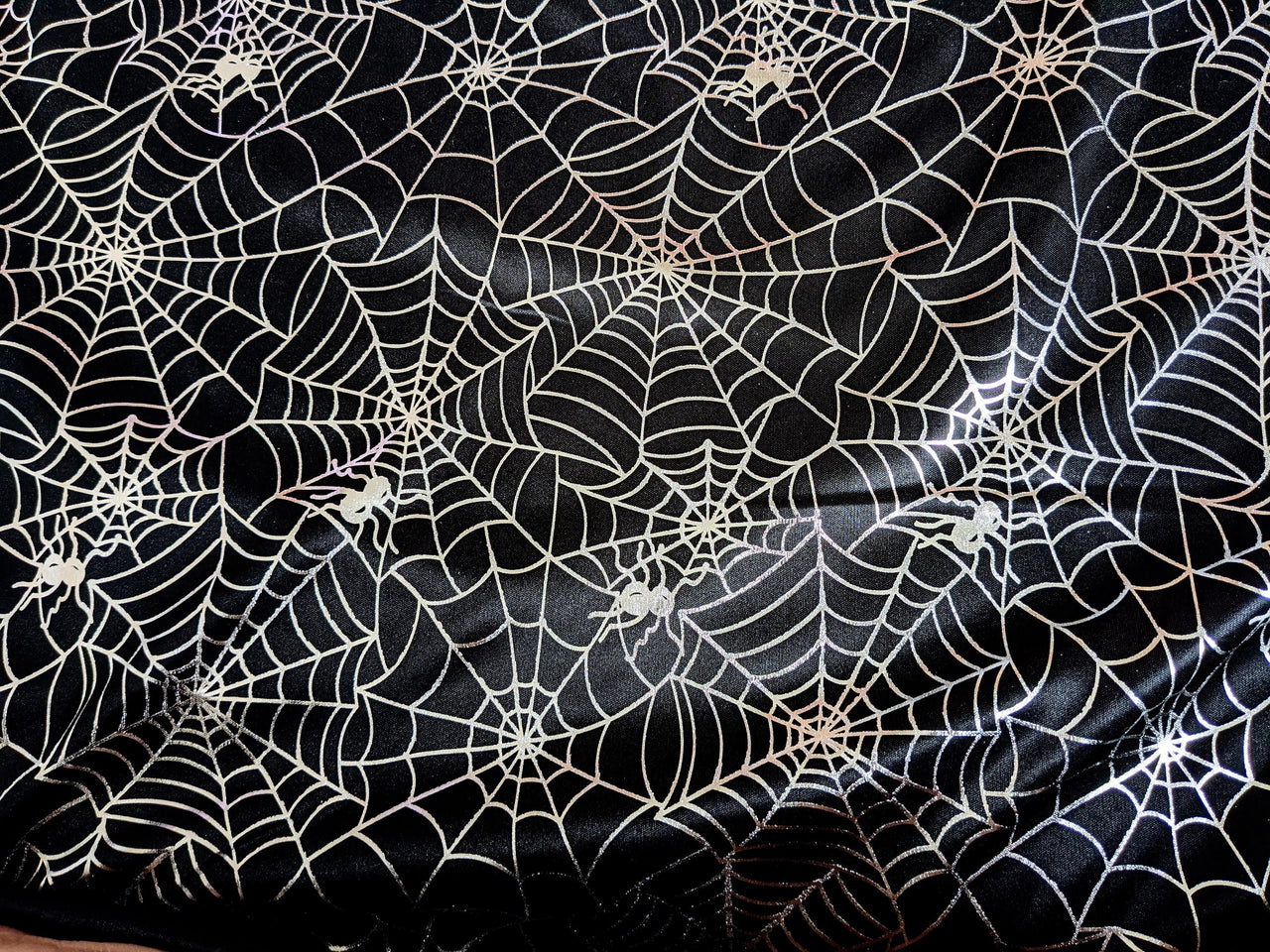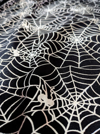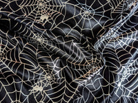 Black And Silver Halloween Spider's Web Foil Fabric, Halloween Fabric, 58 Inches Wide