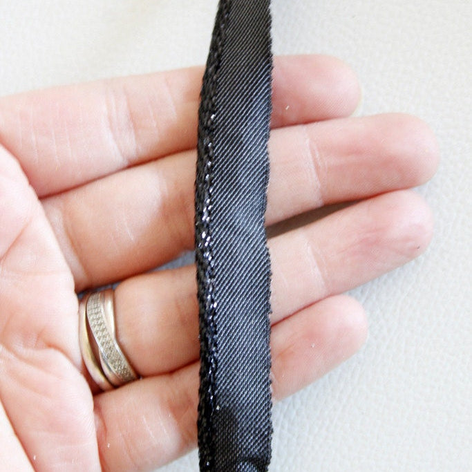 Black Lace Trim With Shining Black Piping, Approx. 14 mm wide