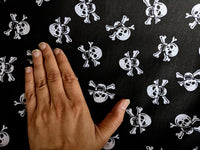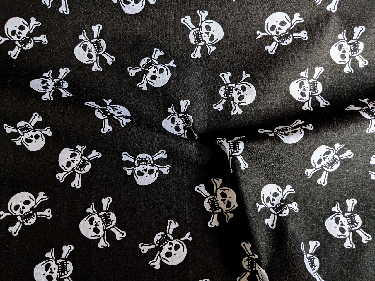 Black Pirate Skull And Crossbones Polycotton Halloween Fabric, Sewing Fabric, 43Inches Wide