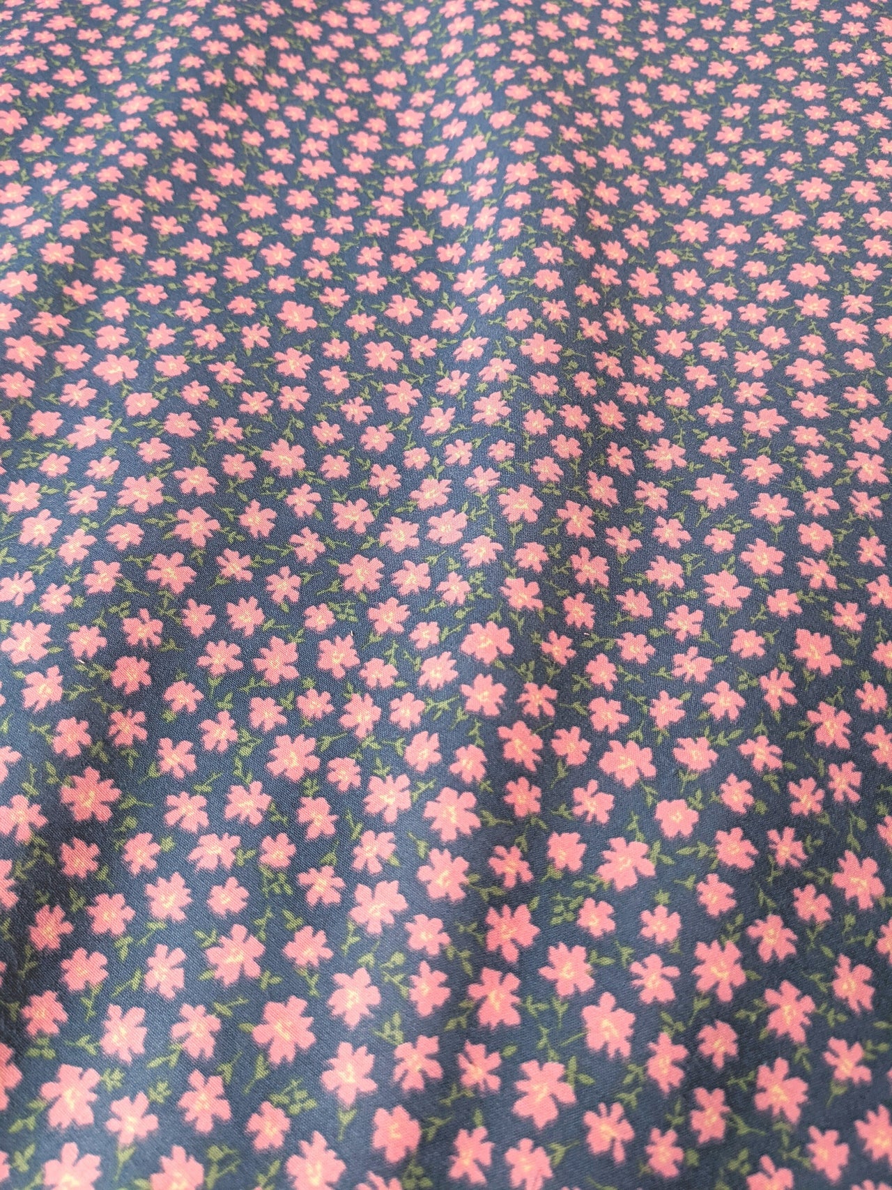 Blue Poly Cotton Fabric, Pink Flower Garden Fabric, Floral Fabric