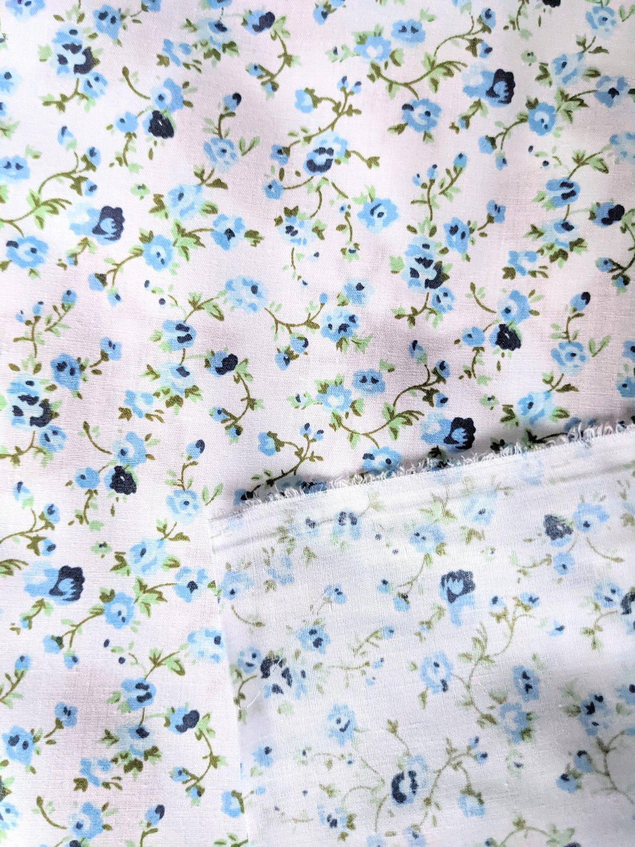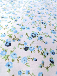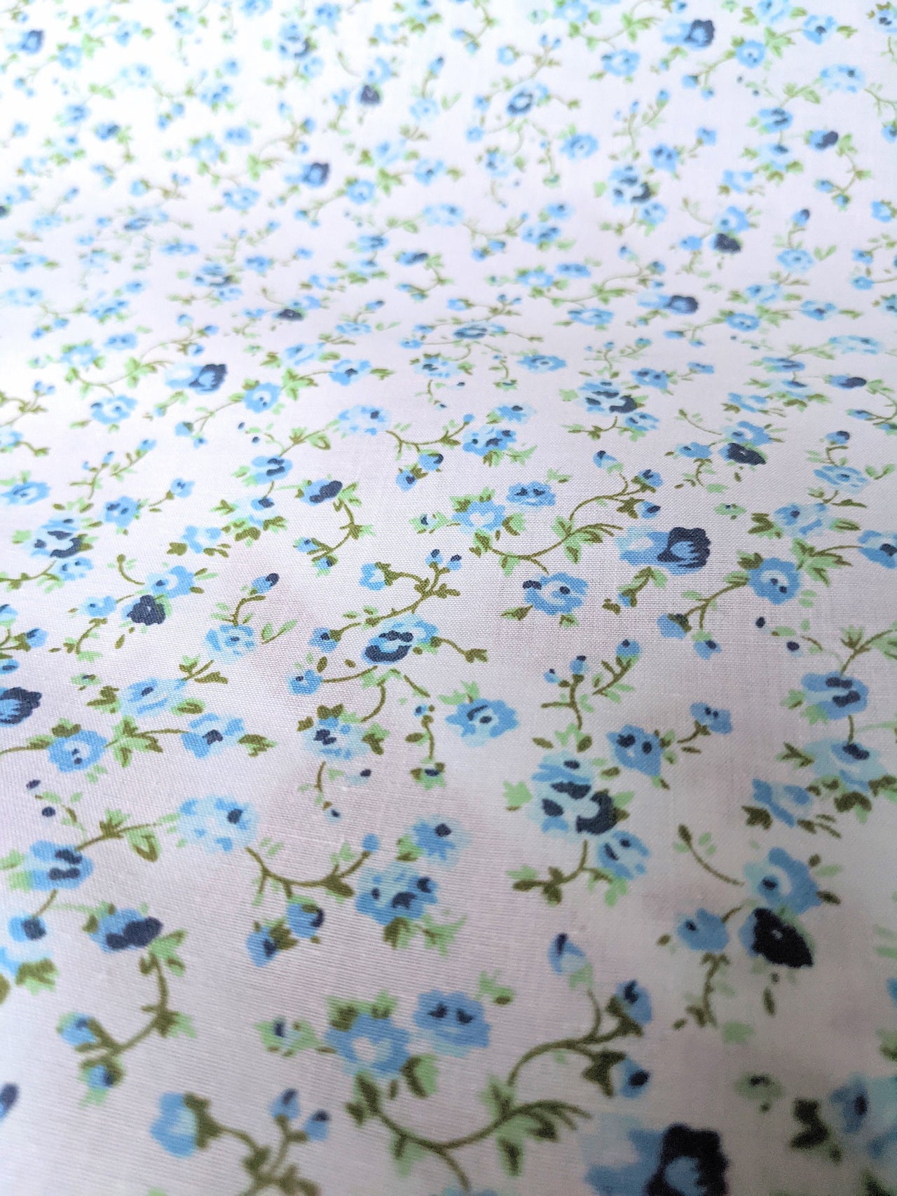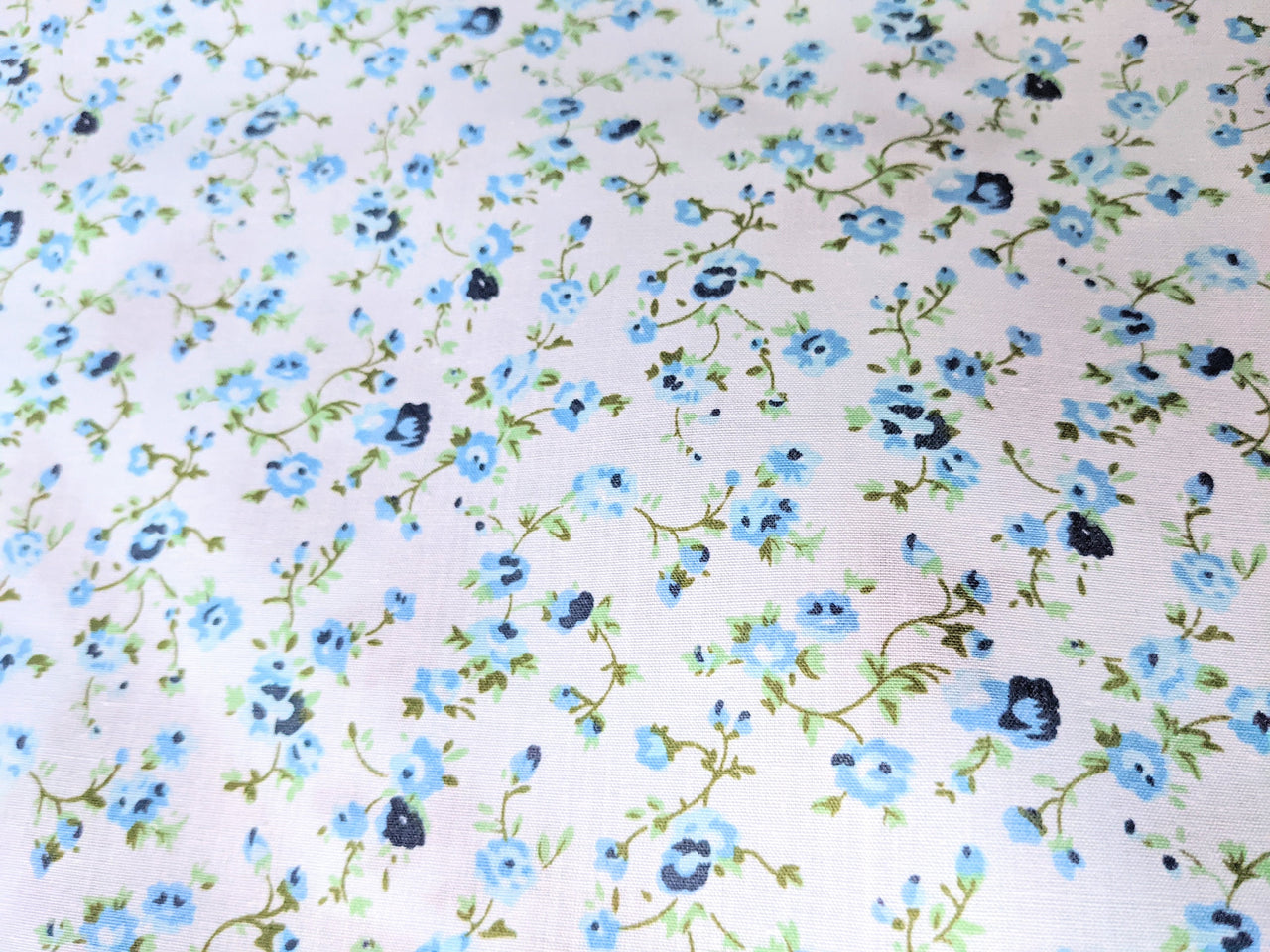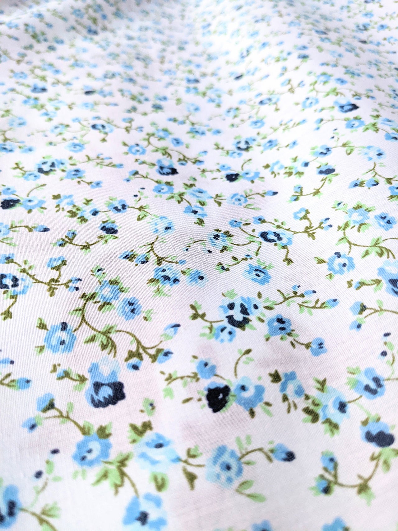Blue Poly Cotton Rose Fabric, Floral Fabric, Small Print Fabric