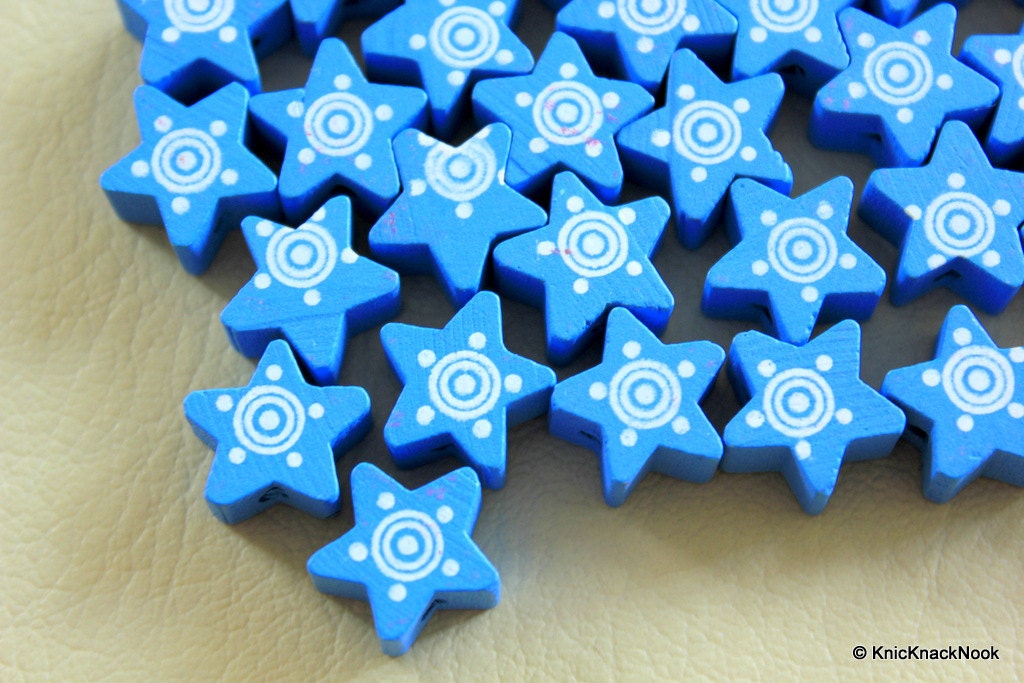 Blue Wood Star Beads x 10