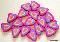 Fuchsia, Blue And Orange Heart Wood Beads x 5