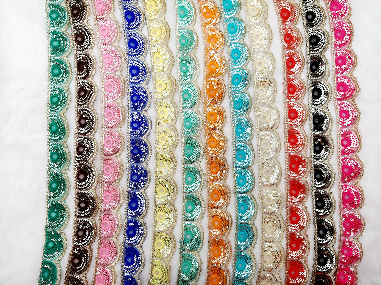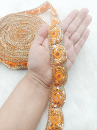 Gold Sequins Embroidery Net Fabric Scallop, Cutwork Lace Trim, Decorative Trim