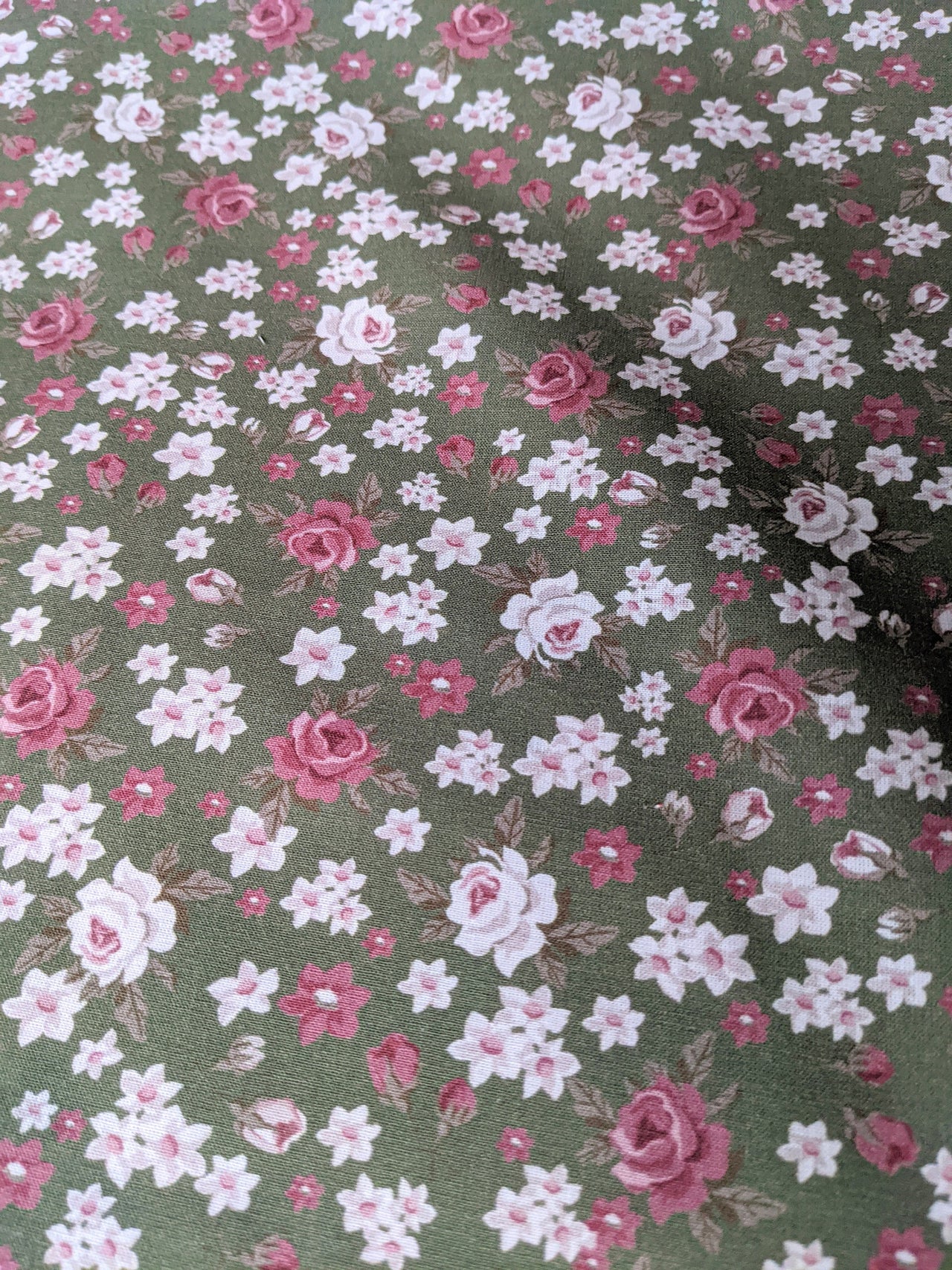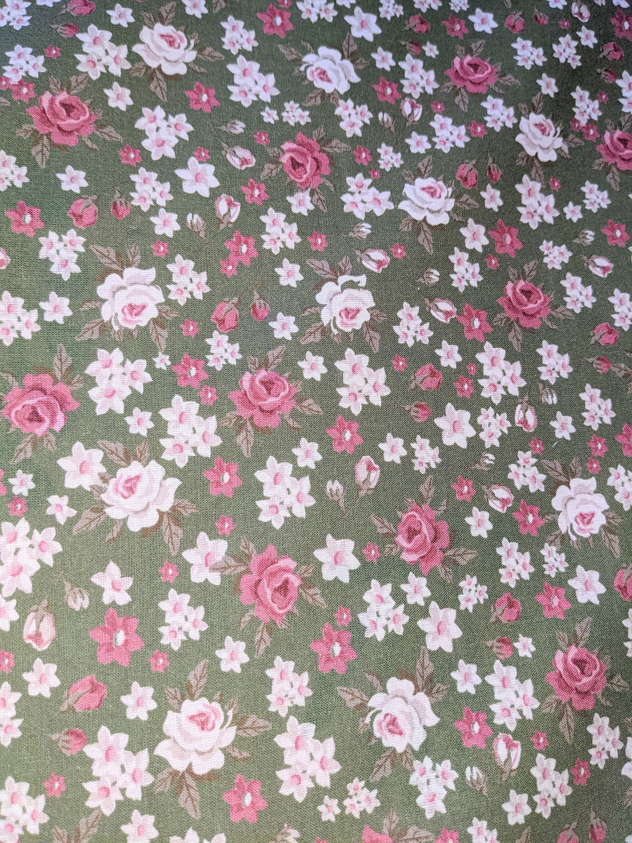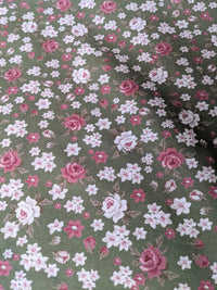Green And Pink Fabric, 100 % Cotton Rose Floral Fabric, Roses Flower Fabric