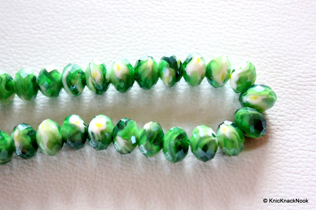 Green Faceted Rondelle Millefiori Glass Beads 12mm