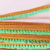 Green Tassels Trim, Gold Fringe Trim, Beaded Trim