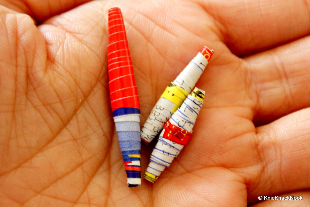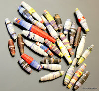 Hand Rolled Recycled Paper Beads Multicoloured x 25