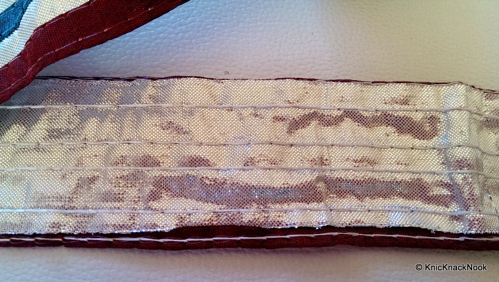 Maroon, Silver And Teal Shimmer Trim Lace, 43 mm Wide