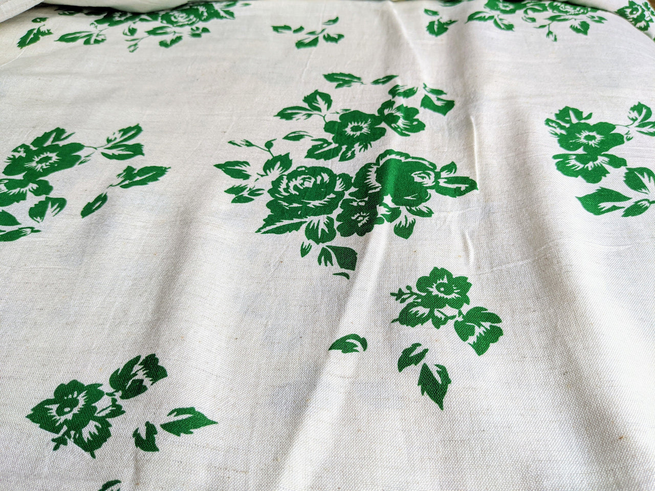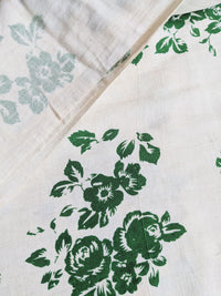 Off White And Green Floral Cotton Handloom Fabric, Quilting Fabric, Fabric By Metre / Fabric By Half Metre
