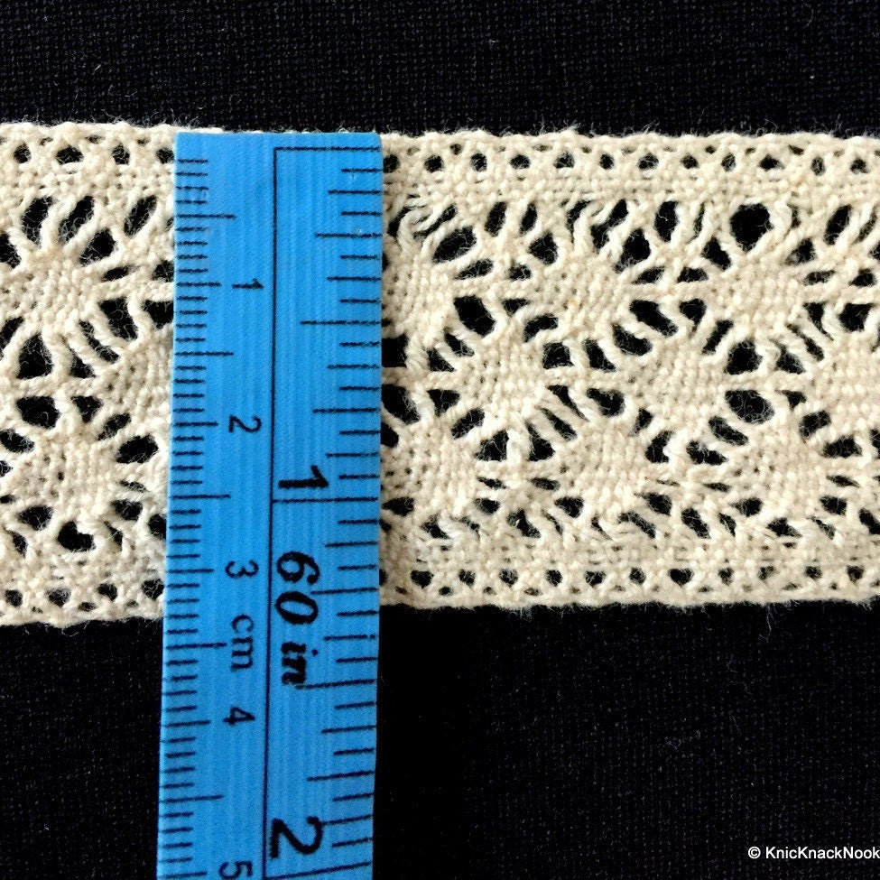 Off White Embroidery Sun Pattern Crochet (Cotton) Lace Trim