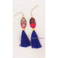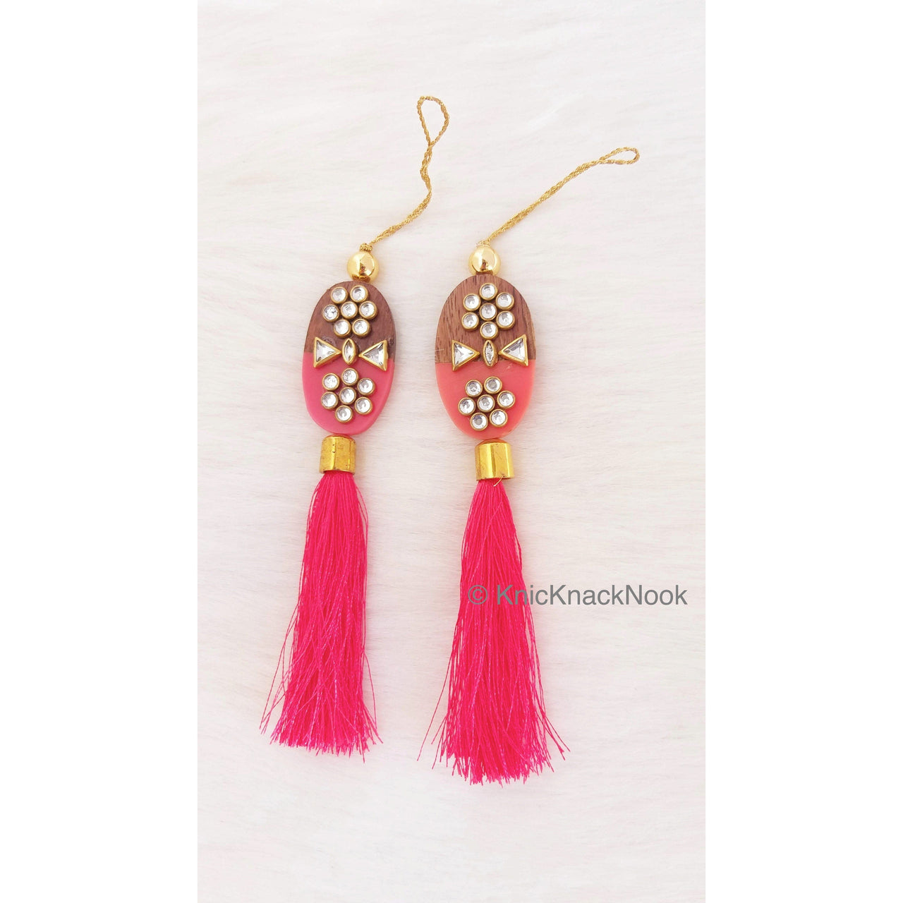 Pink / Blue Tassels With Red And Brown Wood Buttons With Kundan Stones, Indian Tassels, Wedding Supplies