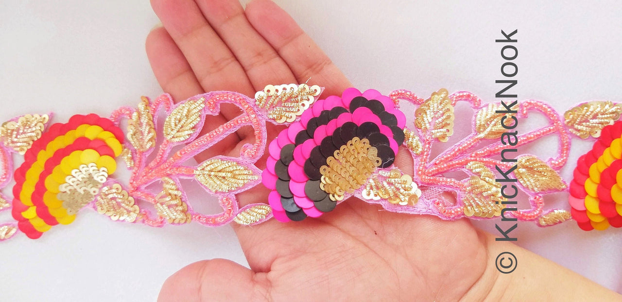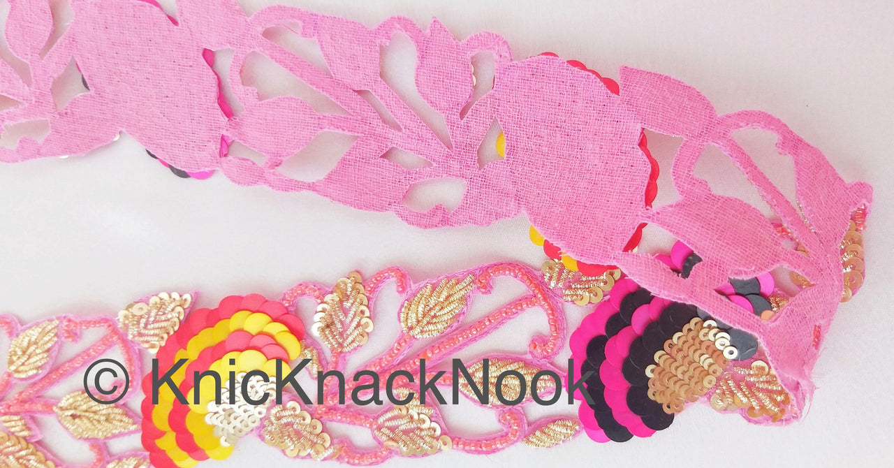 Pink / Peach Indian Beaded Lace Trim, Handmade, Sequins Trim