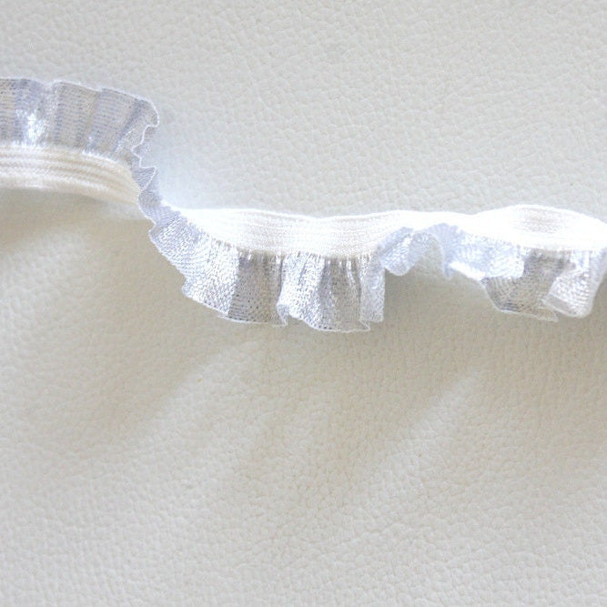 Pleated Silver And White Tissue Ribbon Trim, Approx. 19mm wide