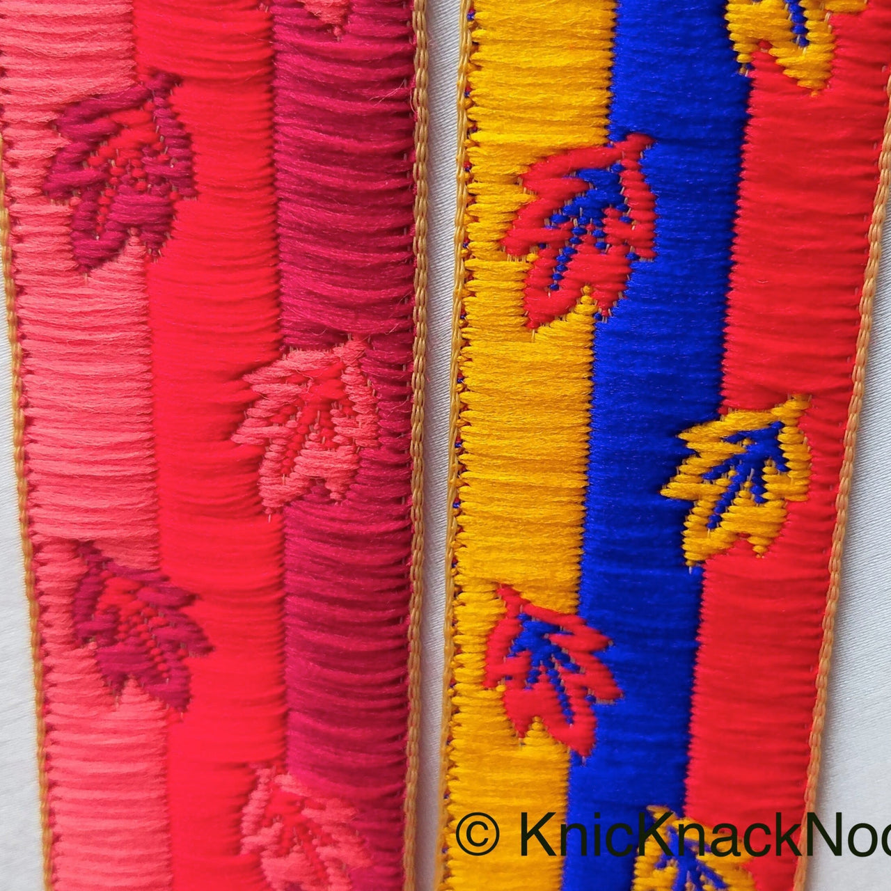 Red, Blue And Yellow Embroidered Trim, Leaf Embroidery Trim