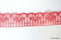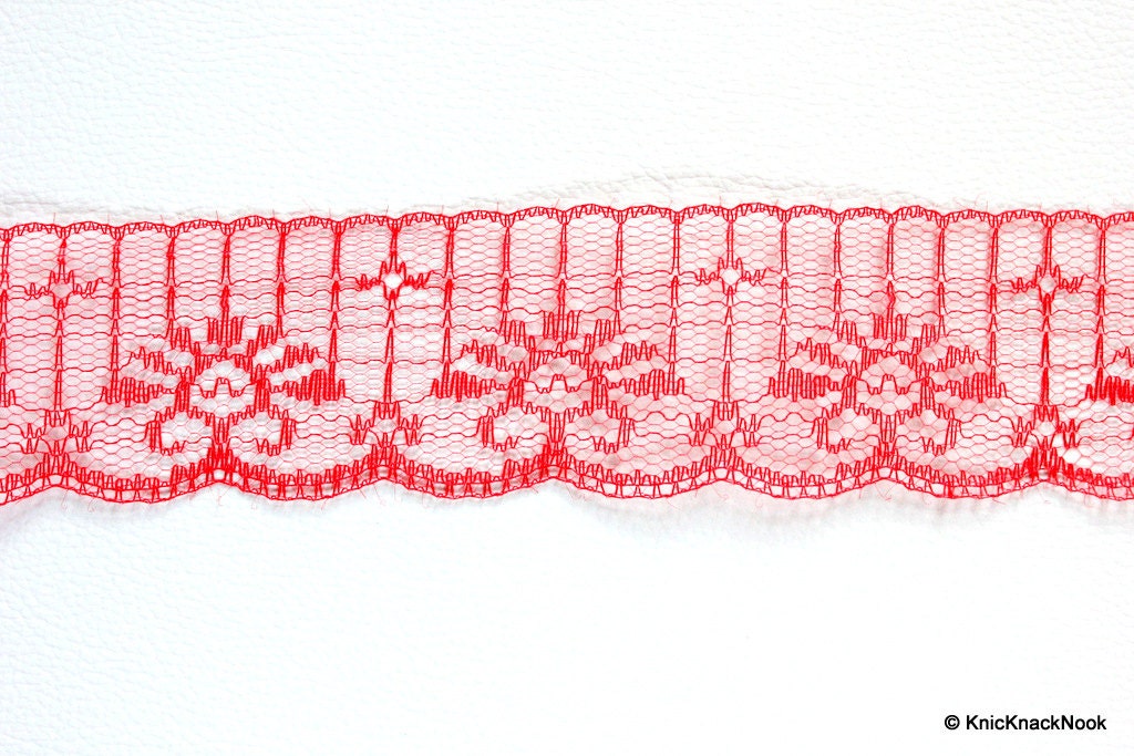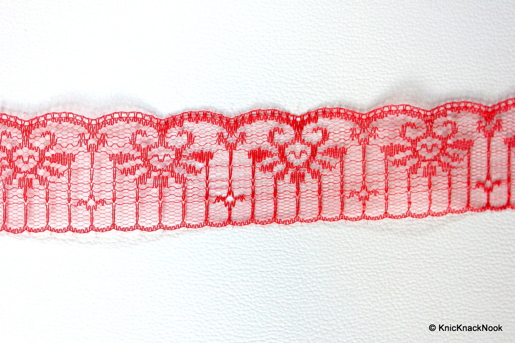 Red Embroidered Net Lace Trim Ribbon 50mm wide, 2Yards