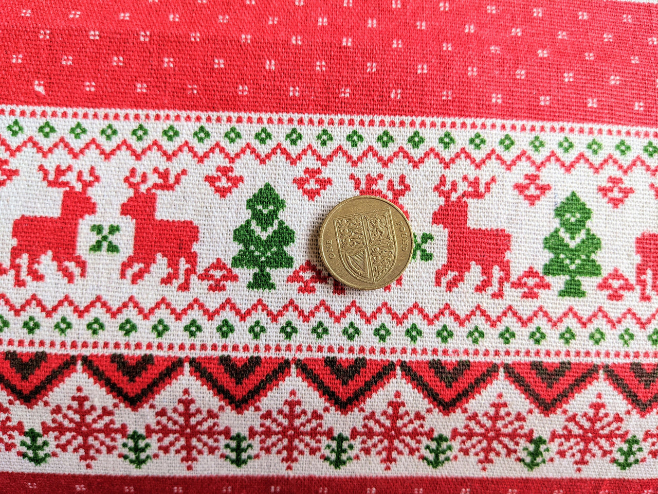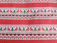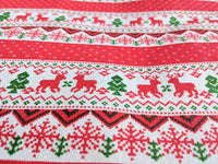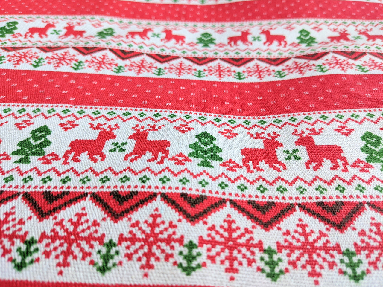Reindeer Snowflakes Stripes Canvas Fabric, Red And White Fabric, Scandinavian Christmas Fabric