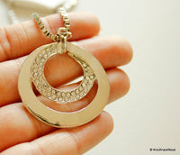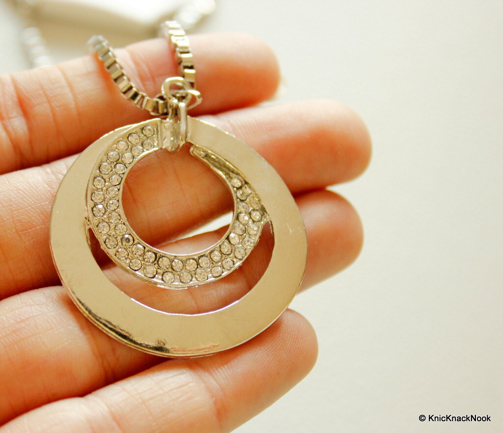 Silver Pendant, Round Crystal Rhinestone Pendant Long Chain Necklace