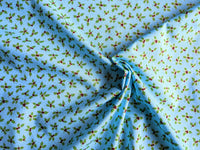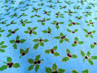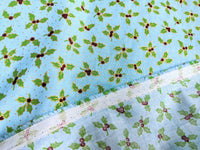 Turquoise Green Cotton Holly Berry Christmas Fabric, Festive Fabric, Holiday Fabric