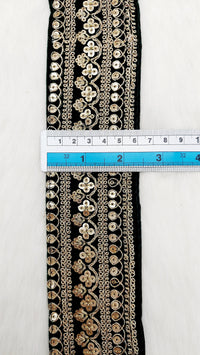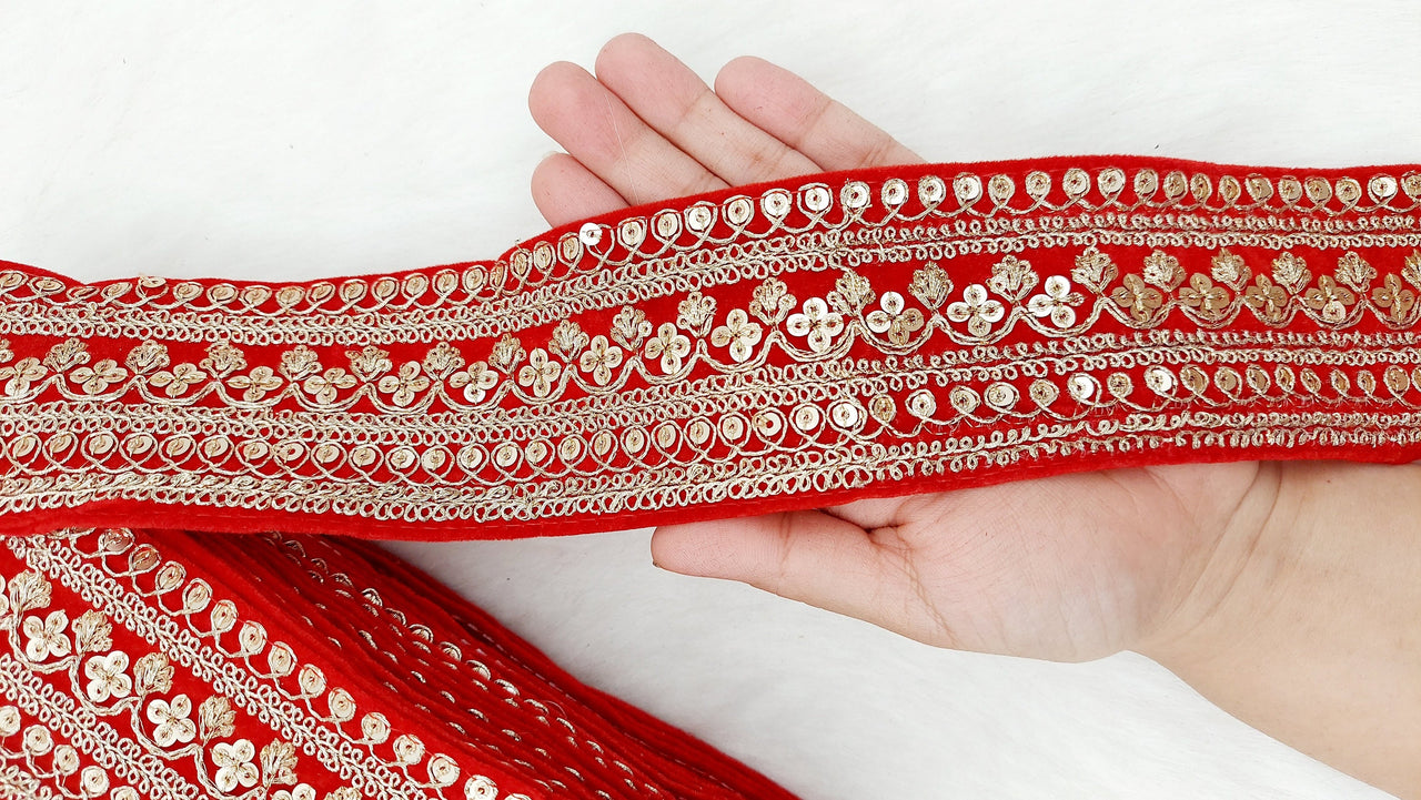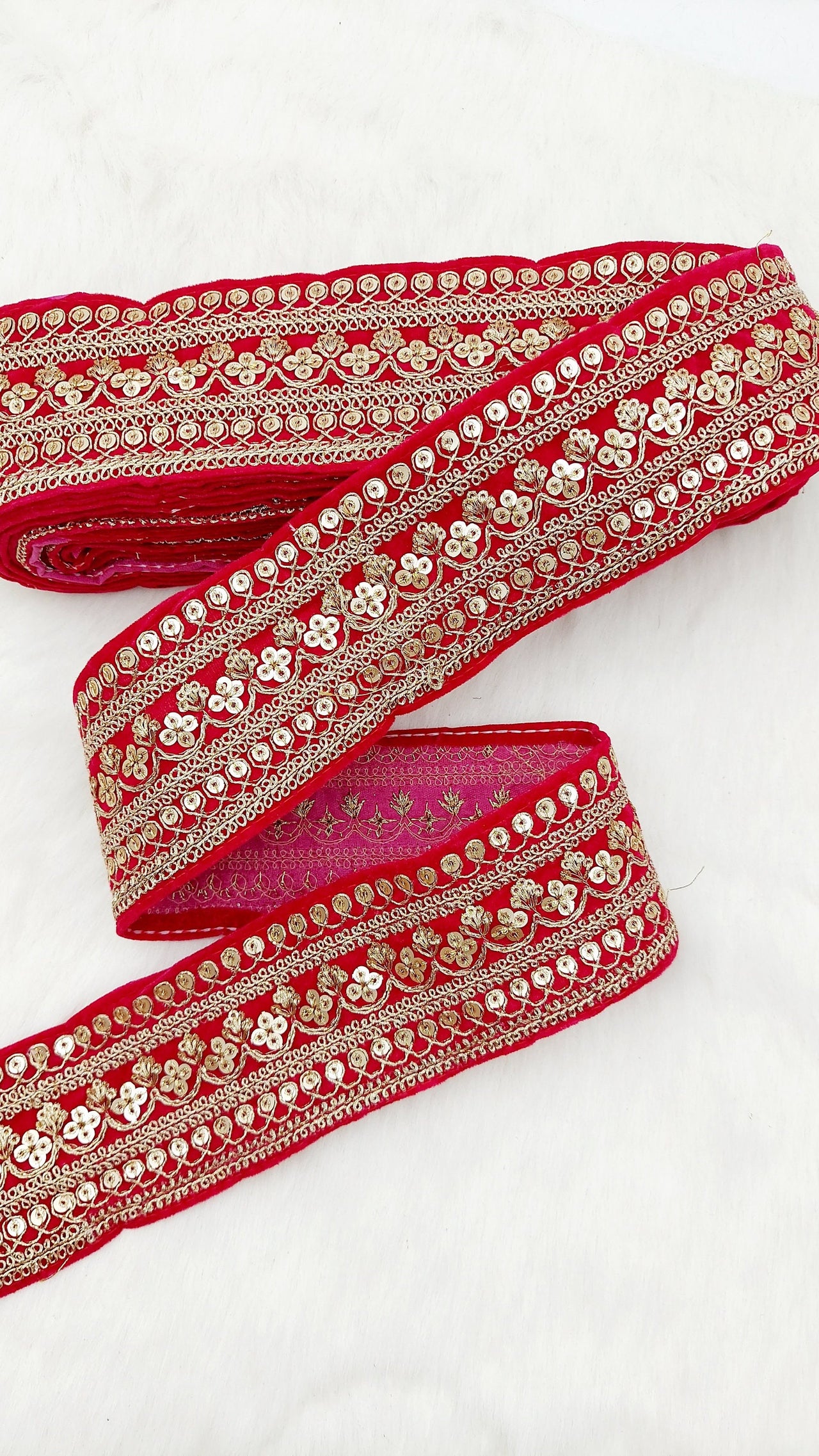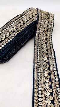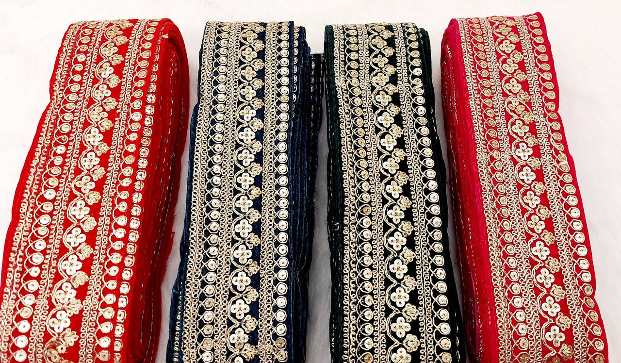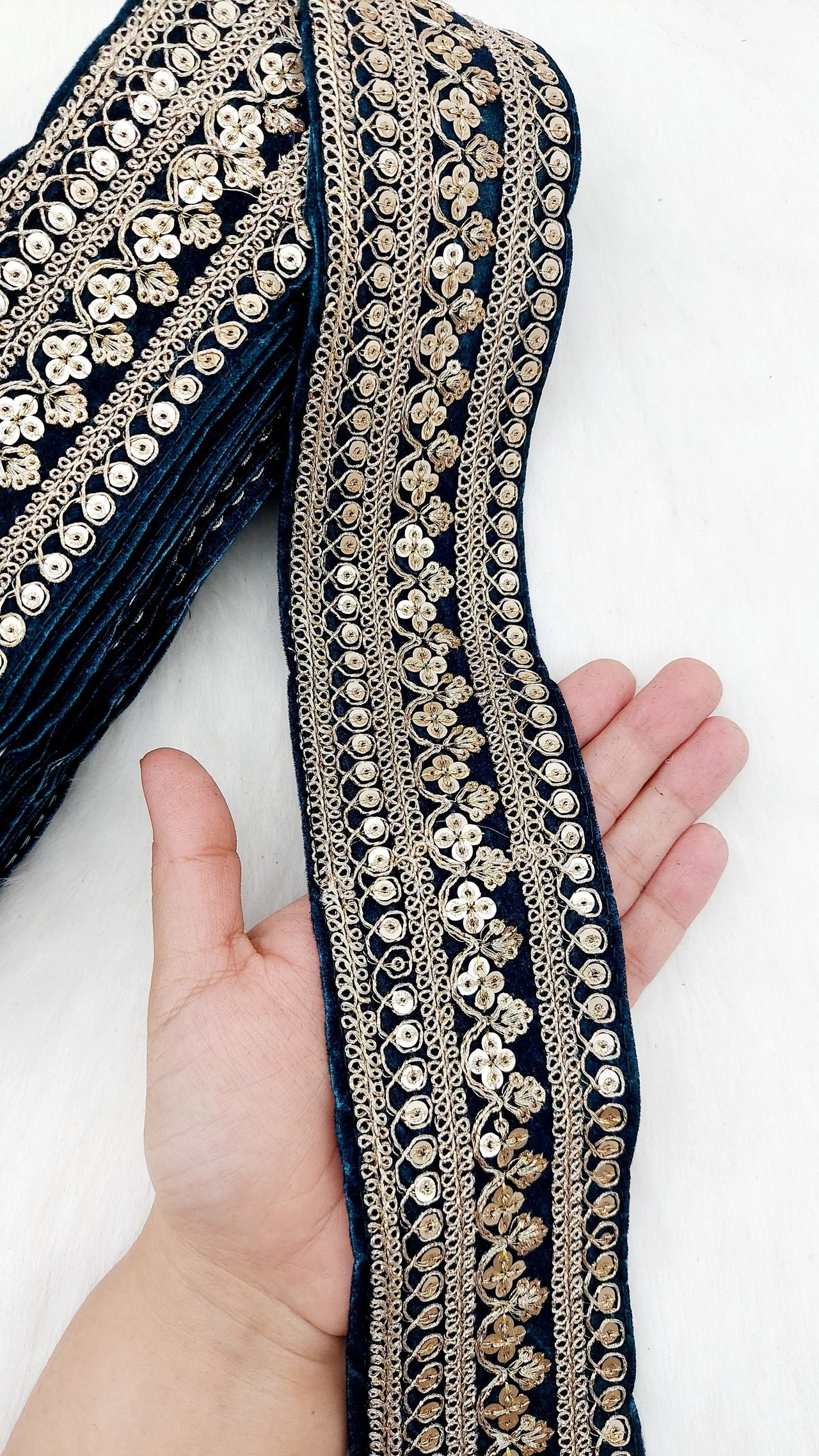 Velvet Fabric Floral Embroidered Sequins Trim Indian Sari Border, Sequin Trimming, Sequinned Lace