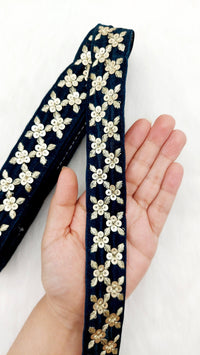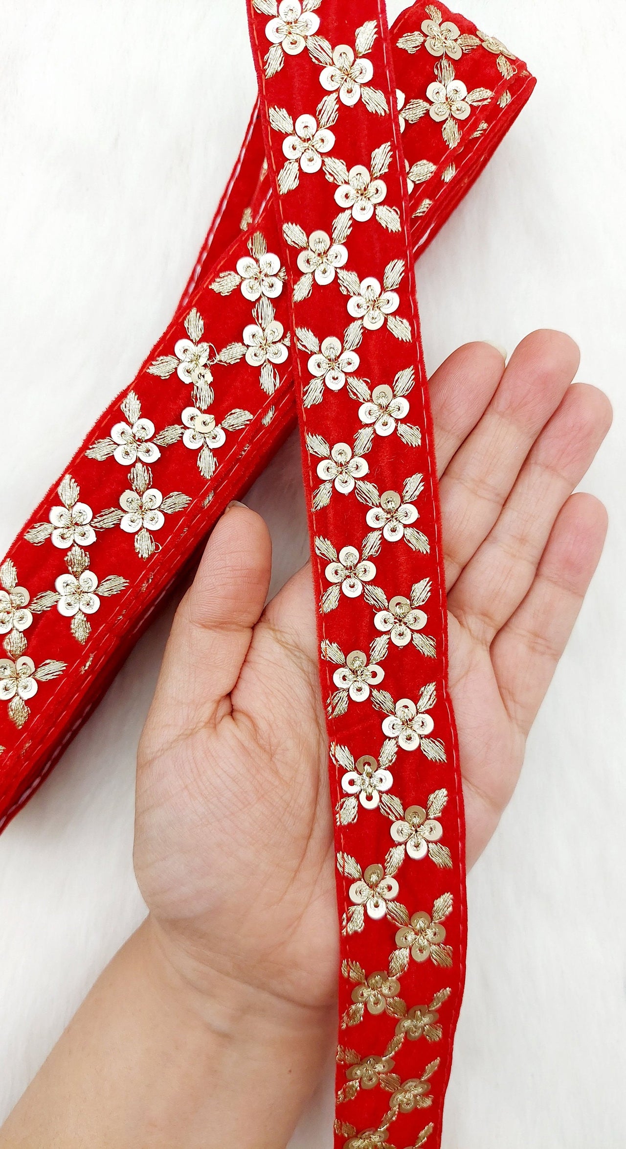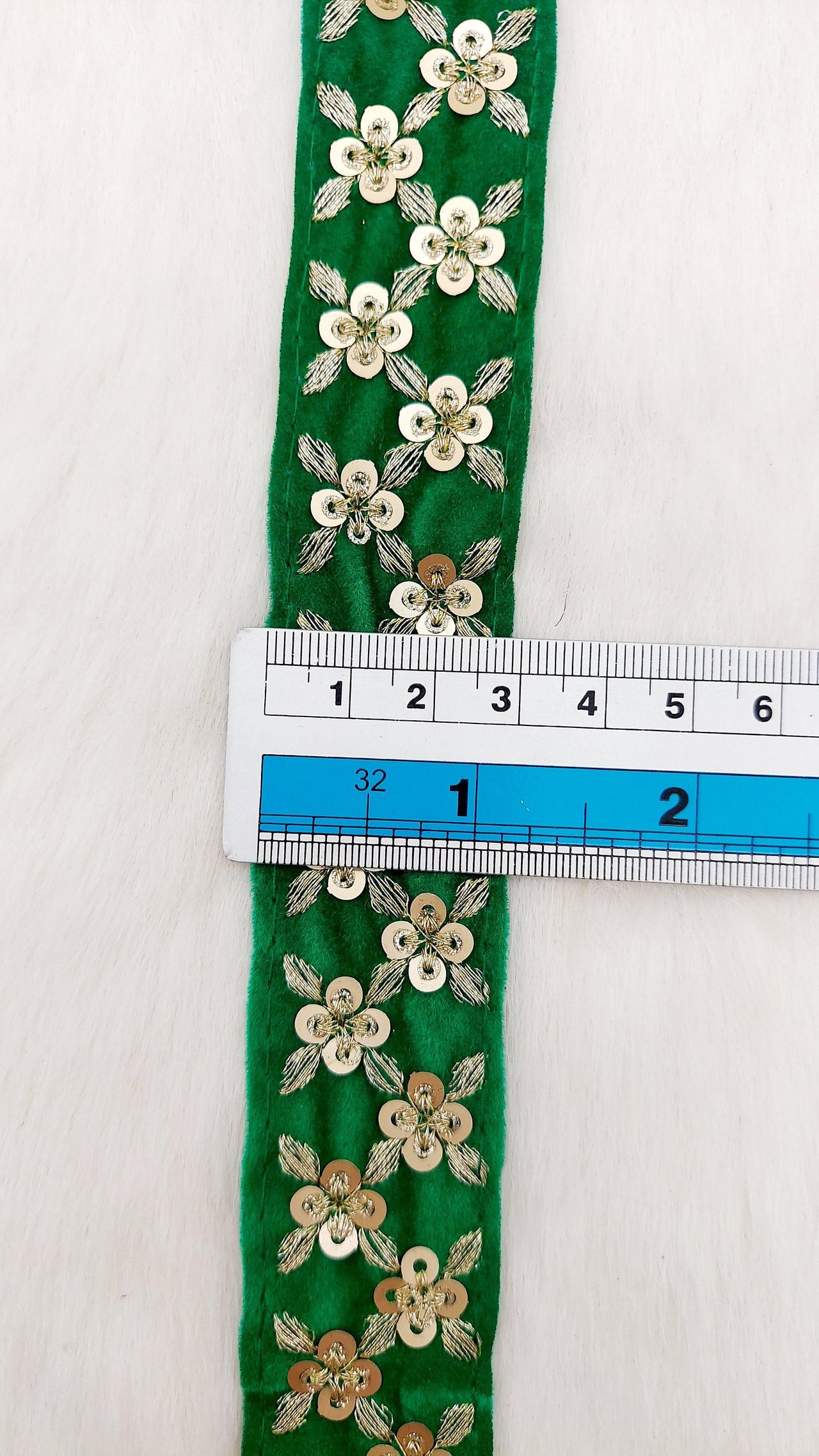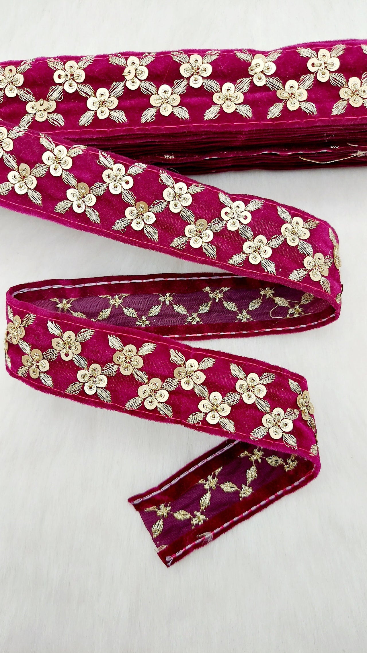 Velvet Fabric Saree Border Trim Floral Embroidered Sequins Trim Indian Sari Border, Sequin Trimming, Sequinned Lace