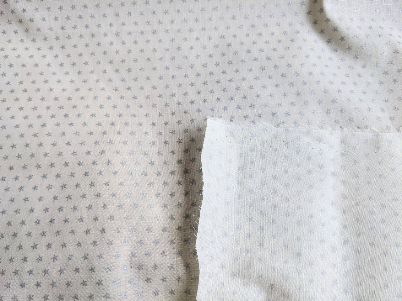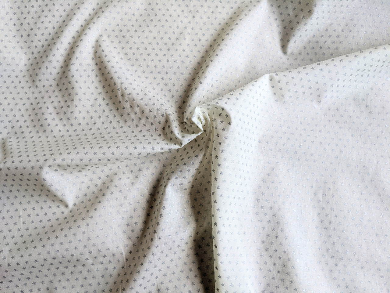 White Cotton Poplin Fabric With Silver Stars Christmas Fabric, Festive Fabric, Holiday Fabric