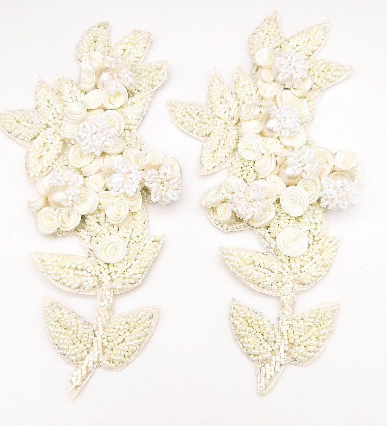 White Hand Embroidered Floral Applique, Beaded Floral Motif