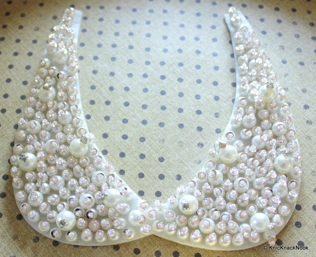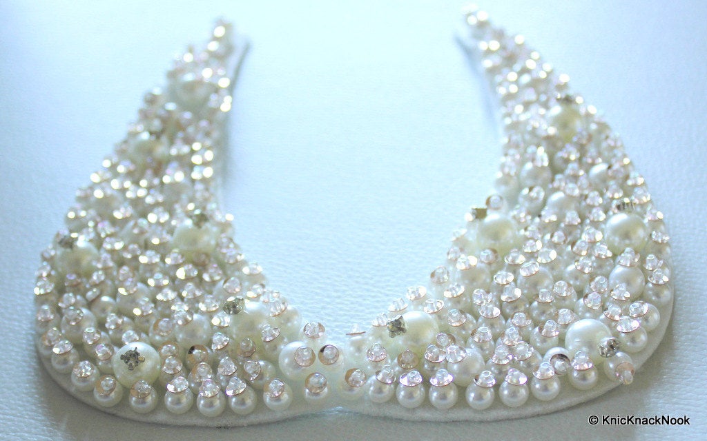 This listing is for a lovely White Pearl And Rhinestones Beads Net Lace Trim, Floral Trim, One Yard, Wedding Trim, Wedding Laces, Approx. 80mm Wide.