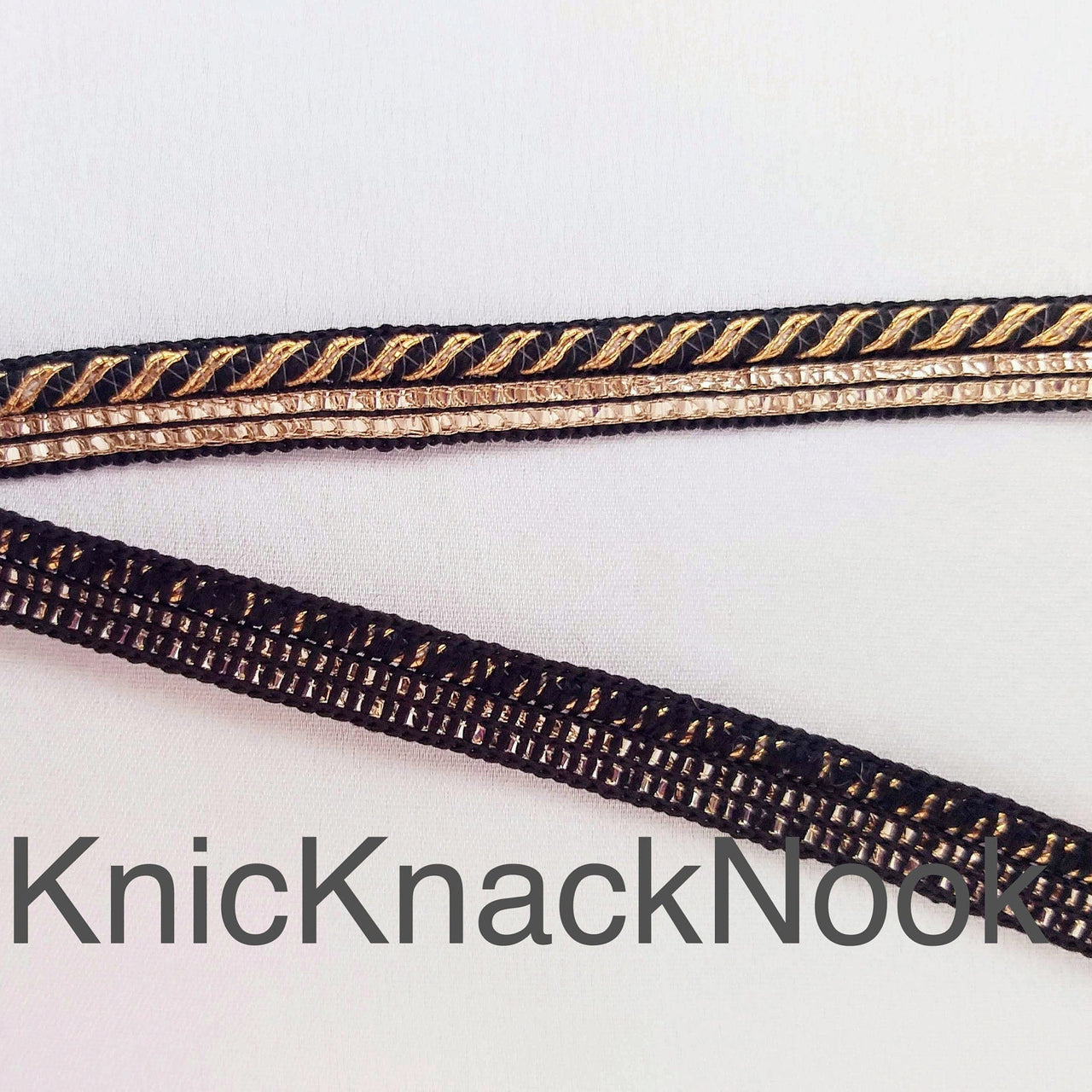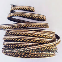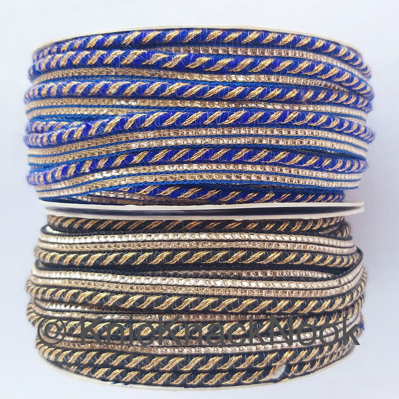 Wholesale Royal Blue / Black And Gold Stripes Piping Cord trim With Glitter Gold Piping, Approx. 10 mm wide, 9 Yards Trim